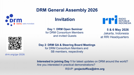 The DRM General Assembly 2026 will be held in Indonesia on 5-6 May 2026.