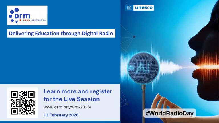 Radio educates. Digital Radio Mondiale (DRM) can help you create virtual classrooms for everyone, everywhere. On UNESCO World Radio Day, discover how DRM digital broadcasts over the airwaves can provide e-learning content – audio, text and images – live or for later use, in one or more languages. Audiences, even in the most remote communities or during emergencies, can receive continuous digital content without the internet. AI can support the creation, translation and tailoring of this e-learning content, including high-quality text-to-speech audio.
